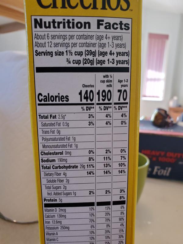 Breakfast cereal nutrition labels